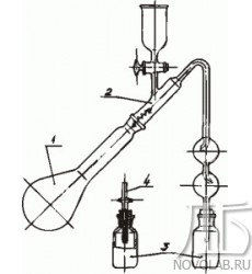 Аппарат для определения мышьяка cостоит из колбы 1 вместимостью 250 мл, насадки 2 с краном и каплеуловителями, двух склянок 3 с пробками и трубки 4.
