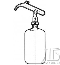 Прибор для отмеривания изоамилового спирта состоит из склянки и дозатора, соединенных между собой с помощью шлифа конического взаимозаменяемого КШ 19/26 по ГОСТ 8682-93 и закрепленных хомутиком и пружинками.