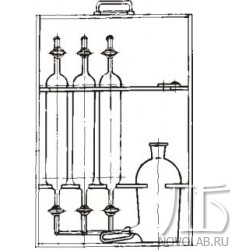 Действие прибора основано на вытеснении газа водой при помощи уравнительной склянки. Используется в тех случаях, когда невозможно провести анализ у места отбора пробы. В качестве уравнительной склянки служит колба с тубусом.