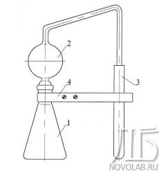 Состоит из реакционной колбы 1, насадки 2, пробирки 3 с поглощающим раствором и держателя 4.