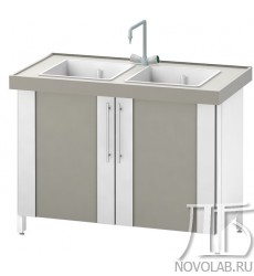 Стол-мойка ЛАБ-PRO МД 120.65.90 PP с двойной мойкой предназначена для мытья лабораторной посуды и может размещаться отдельно или служить функциональным дополнением островных столов.