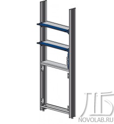- две полки глубиной 350 мм из алюминиевого профиля на регулируемых кронштейнах со вставкой из материала Trovicel свободно перемещаются по всей высоте стойки (в стандартном исполнении нижняя полка устанавливается на высоте 350 мм, верхняя – на высоте 700 мм);