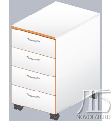 Тумба подкатная низкая ЛАБ-400 ТНЯ-4 с четырьмя ящиками предназначена для дополнительной комплектации лабораторных столов различного исполнения высотой 760 мм (низкие столы) или 900 мм (высокие столы).