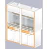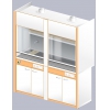 - две тумбы с дверками, съемными полками и возможностью принудительной вытяжки в правом отделении (фланец диаметром 100 мм);