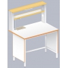 Стол оснащен надстольным стеллажом, в котором размещаются полки и электрика.