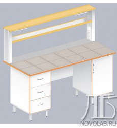 Стол пристенный физический ЛАБ-1800 ПК с рабочей поверхностью из керамической плитки с двумя встроенными тумбами предназначен для различных химических и научно-исследовательских работ в производственных, исследовательских и специализированных лабораториях.