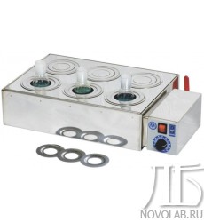 - система из 3-х концентрических колец из нержавеющей стали позволяет размещать в ванне различные плоскодонные колбы объемом до 1 л, стаканы, чашки для выпаривания и т.д. (максимальный диаметр отверстия 110 мм);