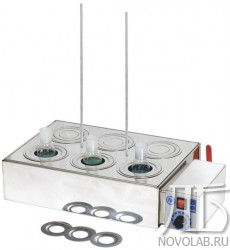 - система из 3-х концентрических колец из нержавеющей стали позволяет размещать в ванне различные плоскодонные колбы объемом до 1 л, стаканы, чашки для выпаривания и т.д. (максимальный диаметр отверстия 110 мм);