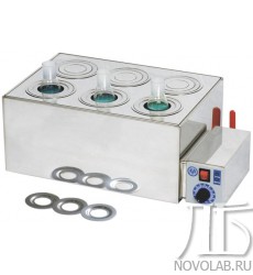 - система из 3-х концентрических колец из нержавеющей стали позволяет размещать в ванне различные плоскодонные колбы объемом до 1 л, стаканы, чашки для выпаривания и т.д. (максимальный диаметр отверстия 110 мм);