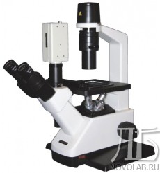 Перевернутая конструкция микроскопа (освещение объекта сверху, наблюдение - снизу) обеспечивает возможность установки посуды, а так же просмотр питательной среды под монослоем.