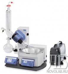 Ротационный испаритель RV 10 control V-C auto (IKA, Германия) состоит из масляной бани HB 10, комплекта стекла RV 10.10, имеющим покрытие из поливинилхлорида (вертикального холодильника, набора стеклянной посуды на 1 литр), привода с автоматическим механизмом для регулировки высоты установки и мембранного вакуумного насоса N 920 KT.29.18 (KNF, Германия).