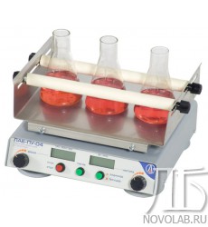 Микропроцессорный контроллер, снабженный таймером, позволяет задавать необходимые условия перемешивания любых жидких компонентов в колбах, делительных воронках, пробирках и другой лабораторной посуде.