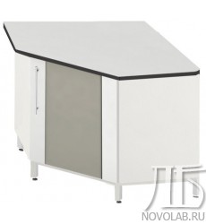 Стол угловой ЛАБ-PRO СУОТ 110/80.110/80.90 TR на опорной тумбе с рабочей поверхностью TRESPA позволяет увеличить площадь рабочих поверхностей за счет использования пространства в углах лаборатории и предназначен для доукомплектования высоких пристенных столов.